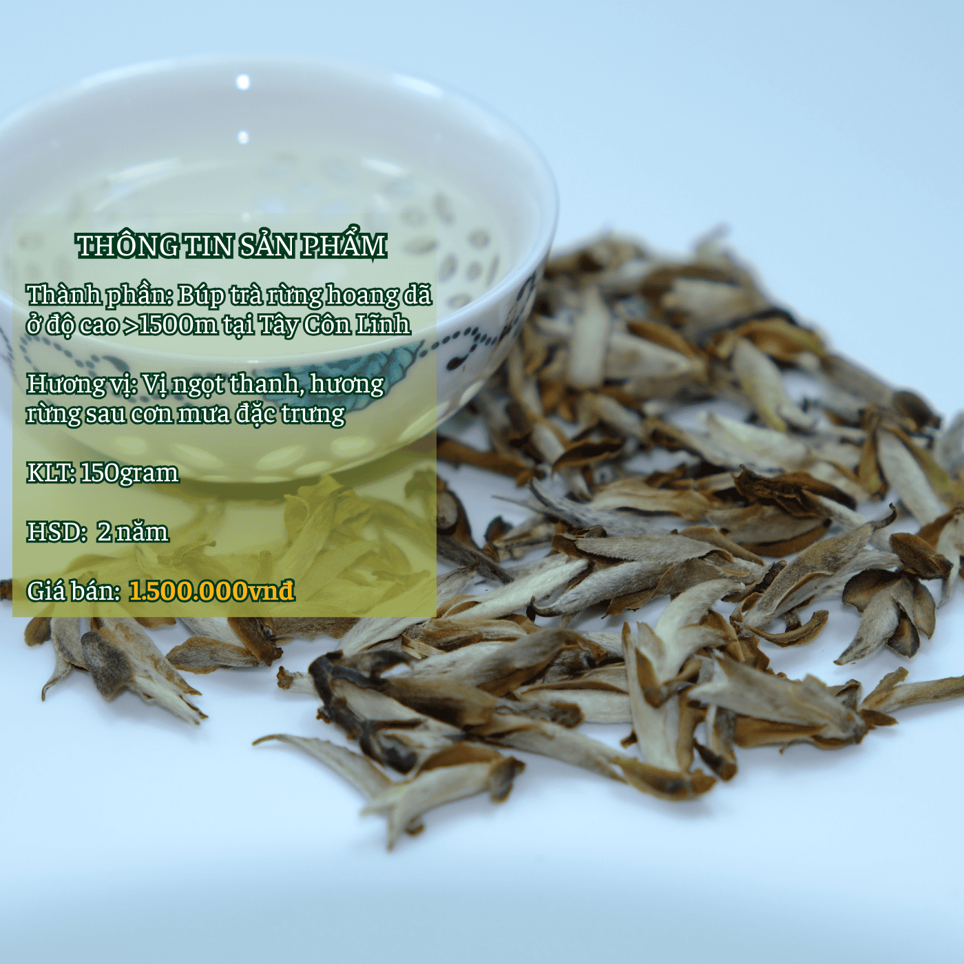 Thành phần của sản phẩm Trà Shan Tiên: Được thu hái và chế biến được giữ nguyên 01 búp trà tự nhiên sao sấy theo quy trình và mong muốn của người sử dụng sản phẩm.