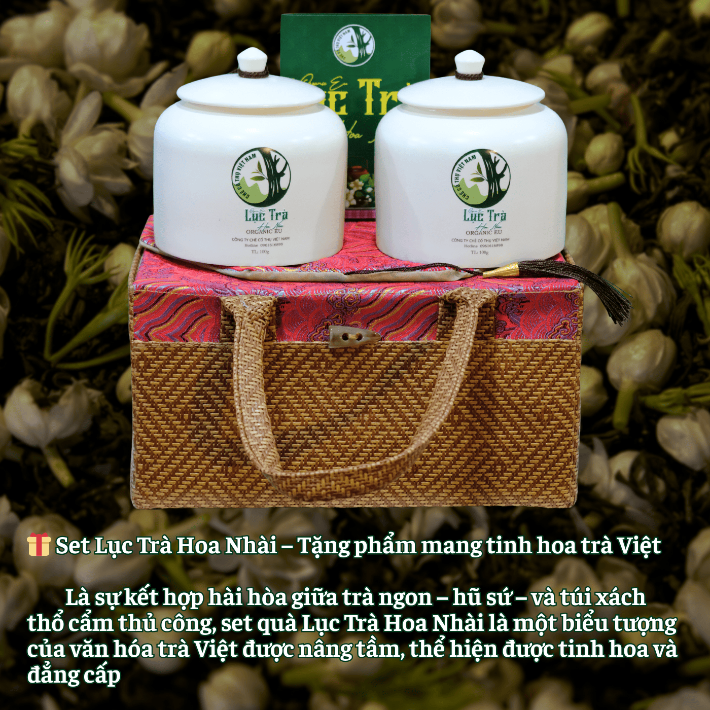Ướp nhài tươi: Hoa nhài canh tác hữu cơ tại Tây Côn Lĩnh, hái lúc chiều muộn (khi nụ “đứng hương”), không dập nát, không đổi màu; ướp 10 giờ với trà, sau đó hạ ẩm.